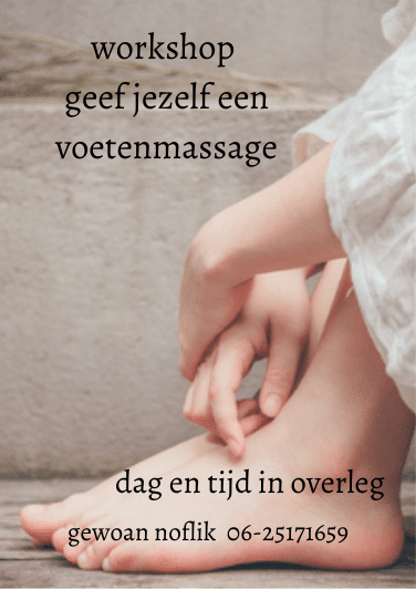 Tijdens deze Workshop leer je jezelf een voetenmassage te geven met de essentiële oliën van Doterra. Tijdens de workshop worden verschillende reflexpunten benoemd en gestimuleerd, met een uitleg wat dit fysiek en/of mentaal voor jou kan betekenen en w's verlichting kan geven op evt. klachten. Verder leer je hoe je een (verwen)moment voor jezelf kan/mag nemen.